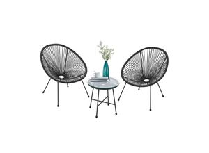 Juskys Balkonmöbel Set Ostana 3-teilig mit Tisch & 2 Sesseln – stilvolles Gartenmöbel Schwarz