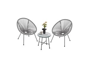 Juskys Balkonmöbel Set Ostana 3-teilig mit Tisch & 2 Sesseln – stilvolles Gartenmöbel Hellgrau