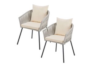 Juskys Rope Stühle 2er Set – mit Seilgeflecht & Polster -wetterfester & bis 160 kg belastbar – Beige