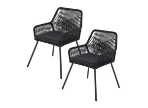 Juskys Rope Gartenstühle Kastos 2er Set – Outdoor Stuhl 150 kg belastbar – Gartenstuhl Schwarz