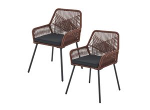 Juskys Rope Gartenstühle Kastos 2er Set – Outdoor Stuhl 150 kg belastbar – Gartenstuhl Braun