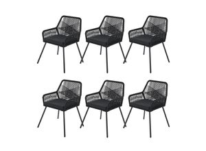 Juskys Rope Gartenstühle Kastos 6er Set – Outdoor Stuhl 150 kg belastbar – Gartenstuhl Schwarz