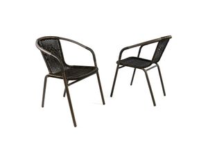 VCM 2er Set Bistrostuhl Stapelstuhl Balkonstuhl Rattanstuhl dunkel-braun Poly-Rattan Füße mit Gumminoppen Maße H. 73xB. 53xT. 60 cm