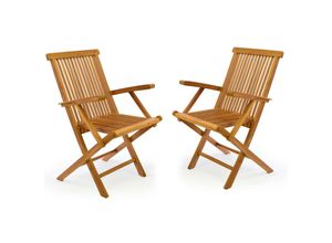 VCM 2er Set Gartenstuhl Armlehnen Stuhl Teak Holz klappbar massiv behandelt Maße: H. 89 cm x B. 57 cm x T. 62 cm