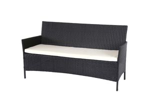 3-Sitzer Poly-Rattan Gartenbank Hamar, Sitzbank ~ anthrazit, Kissen creme