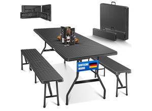 KESSER® Bierzeltgarnitur 3-teilig Set Tisch & 2x Bank Buffettisch für drinnen & draußen Gartengarnitur klappbar 183x76x74cm Kunststoff Klapptisch Gartentisch inkl. Abdeckung & Tragegriffe