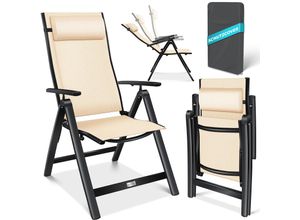 KESSER® Gartenstuhl Hochlehner mit Armlehnen Aluminium Klappstuhl inkl. Kopfkissen Campingstuhl 7-Fach Verstellbar Rückenlehne Atmungsaktiv & Wetterfest Klappbar & Anti-Rutsch