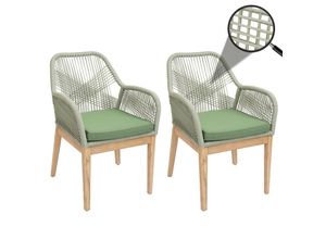 2er-Set Gartenstuhl MCW-H56b, Sessel Outdoor, wetterfest Seilgeflecht Rope Holz Akazie ~ grün Kissen grün