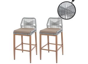 2er-Set Rope-Barhocker MCW-O21, Outdoor Sitzpolster Seilgeflecht Metall Holz-Optik ~ hellgrau, Kissen taupe