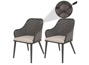 2er-Set Aluminium-Gartenstuhl MCW-O16, Outdoor Stuhl Armlehne, Olefin Seilgeflecht Rope ~ anthrazit Kissen taupe