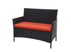 Poly-Rattan Gartenbank Hamar, Sitzbank Bank ~ schwarz, Kissen terracotta