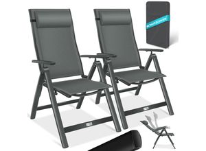 2er-Set Gartenstuhl MCW-O12, Outdoor Sitzpolster Aluminium Seilgeflecht Rope ~ anthrazit, Bezug dunkelgrau