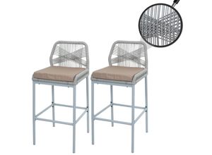 2er-Set Rope-Barhocker MCW-O21, Outdoor Sitzpolster Seilgeflecht Metall ~ hellgrau, Kissen taupe