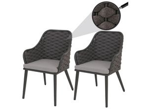 2er-Set Gartenstuhl MCW-O12, Outdoor Sitz-/Rückenpolster Aluminium Seilgeflecht Rope ~ anthrazit, Bezug dunkelgrau