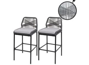 2er-Set Rope-Barhocker MCW-O21, Outdoor Sitzpolster Seilgeflecht Metall ~ anthrazit, Kissen dunkelgrau