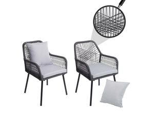 2er-Set Gartenstuhl MCW-O12, Outdoor Sitz-/Rückenpolster Aluminium Seilgeflecht Rope ~ anthrazit, Bezug dunkelgrau