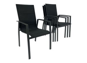 DEGAMO Stapelsessel FARO, Aluminium anthrazit + Kunstgewebe gepolstert schwarz, 4 Stück