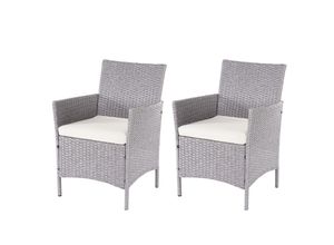 2er-Set Poly-Rattan Stuhl MCW-G19, Balkonstuhl Gartenstuhl, stapelbar ~ grau, Kissen creme