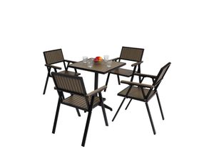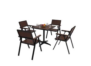 4er-Set Gartenstuhl+Gartentisch MCW-J95, Stuhl Tisch, Gastro Outdoor-Beschichtung, Alu Holzoptik ~ schwarz, dunkelbraun