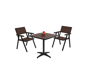 2er-Set Gartenstuhl+Gartentisch MCW-J95, Stuhl Tisch, Gastro Outdoor-Beschichtung, Alu Holzoptik ~ schwarz, dunkelbraun