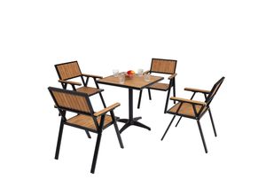 4er-Set Gartenstuhl+Gartentisch MCW-J95, Stuhl Tisch, Gastro Outdoor-Beschichtung, Alu Holzoptik ~ schwarz, teak