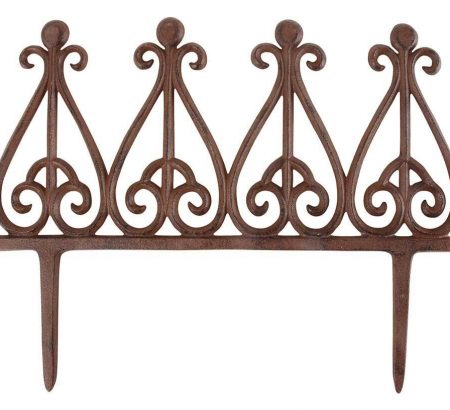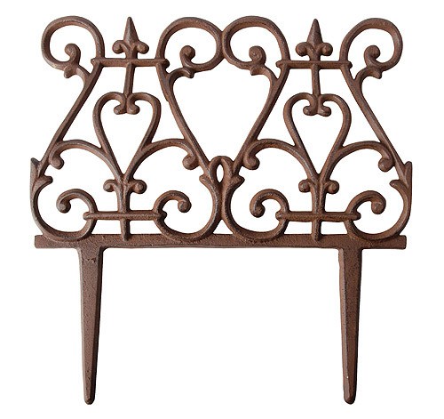 Beetzaun in rustikaler Optik zur schönen Verzierung von Beet und Garten! Dieser Beetzaun aus Gusseisen wurde nach jahrhundert alter, handwerklicher Tradition per Hand gegossen. Einfach in die Erde gesteckt eignet er sich hervorragend zur Beetrand-Verzierung, als schönes Blumengitter oder dekoratives Element in Blumenkästen auf dem Balkon oder im Garten. Die geschwungenen Verzierungen und die rustikale Verarbeitung geben diesem Beetzaun eine besonders antike Ausstrahlung! Maße:  (B/H) ca. 27 x 28 cm
