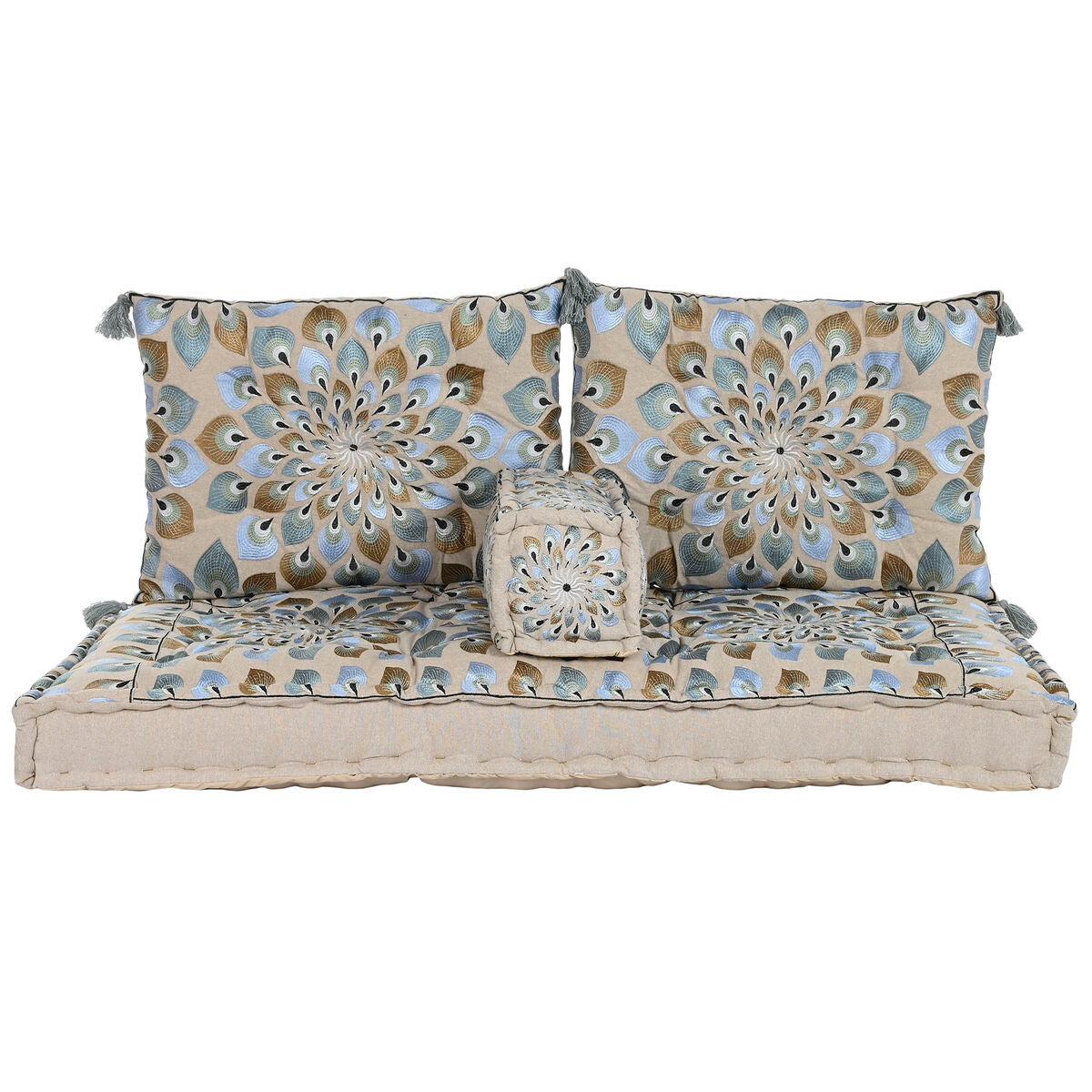 If you want to add a touch of originality to your home, you will do so with Garden sofa DKD Home Decor Blue Beige 155 x 76 x 65 cm 150 x 76 x 20 cm.. Type: Armchair. Number of pieces: 4 Pieces. Colour:. Blue. Beige. Characteristics: Double. Height: 65 cm. Material: Cotton. Adjustable: No. Not included: Battery. Approx. dimensions:. 155 x 76 x 65 cm. 150 x 76 x 20 cm