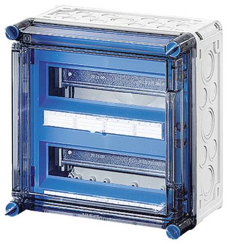 Gehäuse für den Bau von Energie-Schaltgerätekombinationen bis 630 A oder als Einzelgehäuse. Aus hochwertigem Polycarbonat schutzisoliert. Wanddurchführungen mit großen Öffnungen für die elektrische Verbindung der Gehäuse untereinander. Kabeleinführung an allen Gehäusewänden über metrische Vorprägungen oder Anbauflansche. Gehäuse zur Wandbefestigung auch über Außenlaschen oder mit Montageschienen. Automatengehäuse mit 24 Teilungseinheiten zum Einbau von Reiheneinbaugeräten nach DIN 43880. Mit PE- und N-Klemmen für Kupferleiter. N trennbar für unterschiedliche Potenziale. Mit Abdeckstreifen zum Verschließen von nicht benutzten Geräteausschnitten und Beschriftungsstreifen für die Stromkreiskennzeichnung. Transparenter Scharnierdeckel, Deckelverschlüsse für Handbetätigung.
