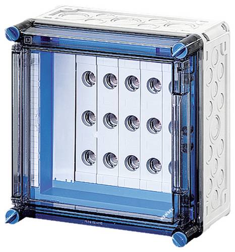 Gehäuse für den Bau von Energie-Schaltgerätekombinationen bis 630 A oder als Einzelgehäuse. Aus hochwertigem Polycarbonat schutzisoliert. Wanddurchführungen mit großen Öffnungen für die elektrische Verbindung der Gehäuse untereinander. Kabeleinführung an allen Gehäusewänden über metrische Vorprägungen oder Anbauflansche. Gehäuse zur Wandbefestigung auch über Außenlaschen oder mit Montageschienen. Gehäuse mit Sicherungselementen für D02-Sicherungseinsätze, E 18, auf Sammelschienen. Mit Zuleitungsklemmen, PE- und N-Klemmen und Berührungsschutz. Deckelverschlüsse für Handbetätigung.
