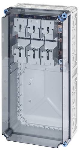 Gehäuse für den Bau von Energie-Schaltgerätekombinationen bis 630 A oder als Einzelgehäuse. Aus hochwertigem Polycarbonat schutzisoliert. Wanddurchführungen mit großen Öffnungen für die elektrische Verbindung der Gehäuse untereinander. Kabeleinführung an allen Gehäusewänden über metrische Vorprägungen oder Anbauflansche. Gehäuse zur Wandbefestigung auch über Außenlaschen oder mit Montageschienen. Gehäuse mit Sicherungsunterteil NH 1, 3-polig, nach IEC 60269 auf Montageplatte. Ohne Zuleitungsklemmen. Mit PE- und N-Klemmen. Deckelverschlüsse für Werkzeugbetätigung.