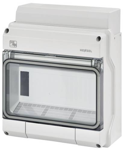 Kleinverteiler aus hochwertigem Thermoplast (Polycarbonat). Für Aufputz-Anwendungen für die ungeschützte Installation im Freien oder in Gebäuden. Automatengehäuse, mit 9 Teilungseinheiten, zum Einbau von Geräten mit Schnappbefestigung auf DIN-Tragschiene. Kabeleinführung erfolgt über metrische Vorprägungen. Mit transparenter Klappe, Kabeleinführungsblende und ausbrechbarem Geräteausschnitt. Schutzart IP 65.
