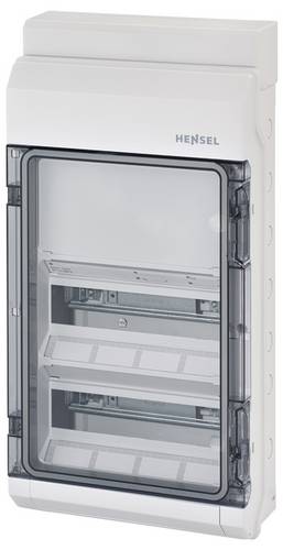 Kleinverteiler aus hochwertigem Thermoplast mit Raum für bedienungsunabhängige Geräte. Mit DIN-Tragschiene für Geräte und Reihenklemmen. Für Aufputz-Anwendungen in Gebäuden oder in der geschützten Installation im Freien. Automatengehäuse, mit 24 Teilungseinheiten, ohne PE- und N-Klemme. Zum Einbau von Geräten mit Schnappbefestigung auf DIN-Tragschiene. Kabeleinführung über integrierte elastische Dichtmembranen. Mit transparenter Tür und Kabeleinführungsblende, integriertem Zubehörfach und Abdeckstreifen für den Geräteausschnitt. Schutzart IP 65.