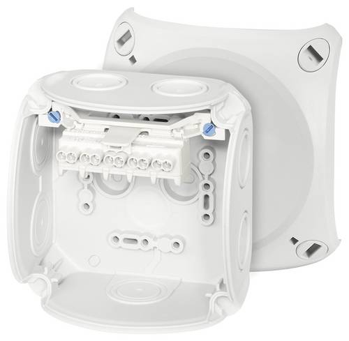 Kabelabzweigkasten aus hochwertigem Thermoplast. Für Aufputz-Anwendungen in Gebäuden oder die geschützte Installation im Freien. Mit Außenlaschen zur Befestigung und Deckelbefestigung über Schnellverschlüsse. Mit innovativer Klemmentechnik bis 2,5 mm², 5-polig. Kabeleinführung über elastische Dichtmembranen in Gehäusewänden und Boden. Nachträglicher Einsatz von Kabelstutzen durch Entfernen der Dichtmembrane möglich. Mit Deckelhalteband.