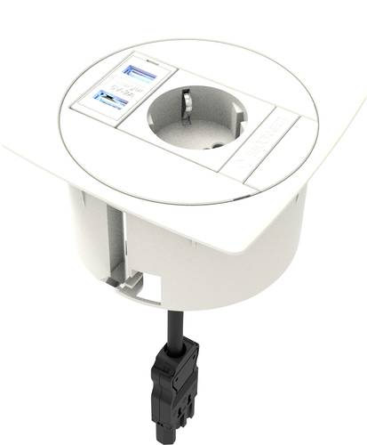 Die Basislösung für die elektrische und multimediale Konnektivität eines Arbeitsplatzes. Es fixiert den Orgatech-Wirbel direkt und enthält Kabelführungsräume für den zusätzlichen Kabelzugang. Nicht elektrifiziert, kann der Orgatech-Wirbel direkt auf dem Boden oder an der abgehängten Decke befestigt werden dies ist der Beginn der Kabelorganisation in einer Installation.