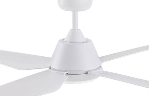 Der Aria 122 cm Lüfter ist mit seinen verborgenen Flügelhalterungen anspruchsvoll gestaltet. Er hat ein ABS-Gehäuse und Flügel, perfekt für die Küstenumgebung. Den Aria Deckenventilator gibt es in weiß und schwarz mit integriertem 18 Watt LED-Licht, nicht dimmbar, 1100 Lumen, 3000 K warmweiß. Das Licht und der Ventilator können bequem getrennt voneinander per Infrarot-Fernbedienung gesteuert werden.