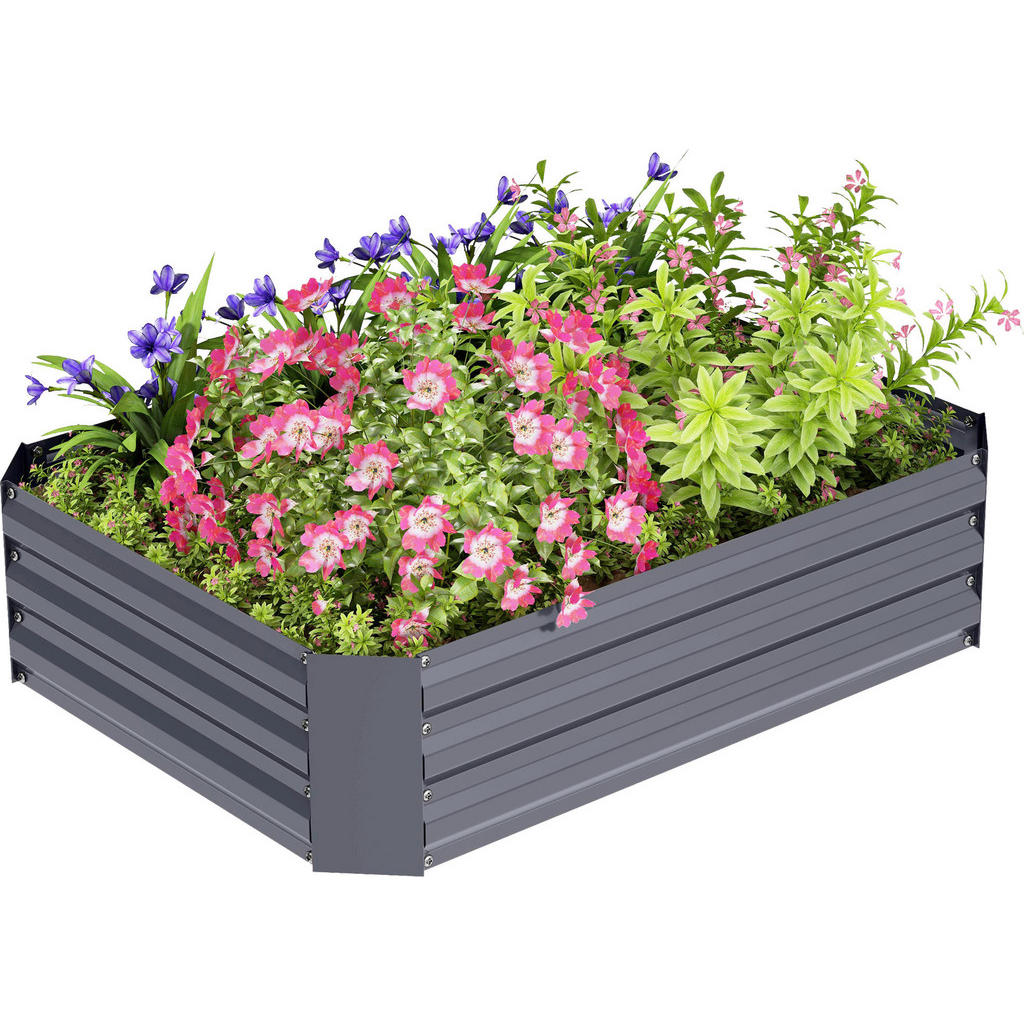Besseres Wachstum: Dieses Garten-Hochbeet hält Unkraut fern und schützt Ihre Pflanzen vor dem Abfressen oder Abnagen durch Kleintiere Witterungsbeständig: Hergestellt dieses Gemüsebeet aus stabilem, verdicktem und verzinktem Stahl mit Anti-Rost-Beschichtung für den langjährigen Einsatz, was ihn auch bei widrigen Wetterbedingungen besonders beständig und pflegeleicht macht Offener Boden: Bietet guten Wasserablauf. Darüber hinaus gewährleistet das unten offene Design des Kräuterbeets ein ungehindertes Wachstum der Pflanzen, indem es hilft, ein tiefes Wurzelgeflecht zu entwickeln und mehr Nährstoffe aufzunehmen Einfache Montage: Das Design dieses erhöhten Kräuterhochbeets ist einfach und stabil gehalten, sodass es schnell und leicht zusammengesetzt werden kann Produktdaten zum Pflanzenkasten: Gesamtmaße: 120L x 90B x 30H cm. Pflanzfläche: 117L x 88B x 30H cm Beschreibung: – Gartenbeet mit erhöhtem Stahlrahmen: 120 cm x 90 cm; – Hergestellt dieses Hochbeet für Balkon aus verzinktem Stahlblech mit starkem Rostschutz; – Hält dieses Kräuterbeet Unkraut fern und sorgt für einen guten Wasserablauf; – Bauen Sie eine Vielzahl Ihrer Lieblingspflanzen, Gemüse, Kräuter, Blumen und vieles mehr in diesem Kräuterbeet an; – Einfache Montage, sodass Sie schnell mit der Gartenarbeit beginnen können; Technische Daten: – Farbe: Dunkelgrau – Material: Verzinkter Stahl – Gesamtmaße: 120L x 90B x 30H cm – Innenmaße: 117L x 88B x 30H cm Lieferumfang: – 1 x Gartenbeet – 1 x Anleitung
