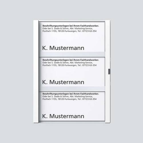 Namensschild mit Schrifteinlage für die Tasten-Module TM 612-3 und BTM 650-03.