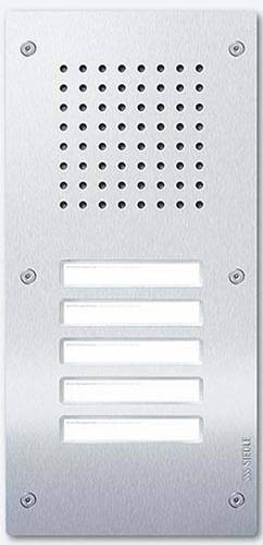 Classic-Türstation für das 1+n System mit Edelstahl-Front, V4A gebürstet, ohne Gehäuse zur Montage auf vorhandenes Unterputzgehäuse Größe C der Baureihe TL 111. Türlautsprecher mit 5 Ruftasten.
