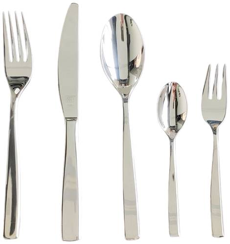 Mit dem hochwertigen Besteckset aus der Serie Albany von ZWILLING ist die Essenstafel zum Familienfrühstück, Lunch mit Kollegen oder Dinner mit Freunden vollständig und mit Stil gedeckt. Je sechs Menülöffel, Menügabeln, Menümesser, Kaffeelöffel und Kuchengabeln umfasst das Set. Mit einem modernen Schliff und abgerundeten Griffen liegt jede Gabel, jeder Löffel und jedes Messer angenehm in der Hand. Die großflächige Schneide des Messers teilt zudem jedes Gericht ohne große Mühe in mundgerechte Stücke. Das 30-teilige Besteckset für 6 Personen wurde aus hochwertigem 18/10 Edelstahl gefertigt, wodurch es nicht nur pflegeleicht und rostfrei ist, sondern sich auch zur einfachen und schnellen Reinigung in der Spülmaschine eignet. Mit der polierten Oberfläche des Edelstahl-Bestecks und dem dezent gravierten ZWILLING Logo wird das Ensemble zum glänzenden Blickfang des gedeckten Tisches.